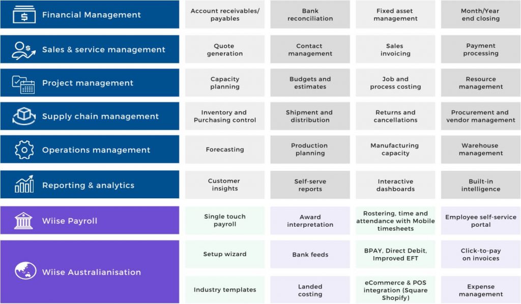 More than just accounting software, Wiise is enterprise-level technology designed for businesses of all shapes and sizes. So no matter if you need one user, or 300, need consolidated reporting across multiple entities or locations, or are looking for a cloud ERP solution that scales with your business, Wiise is a solution you’ll never outgrow.