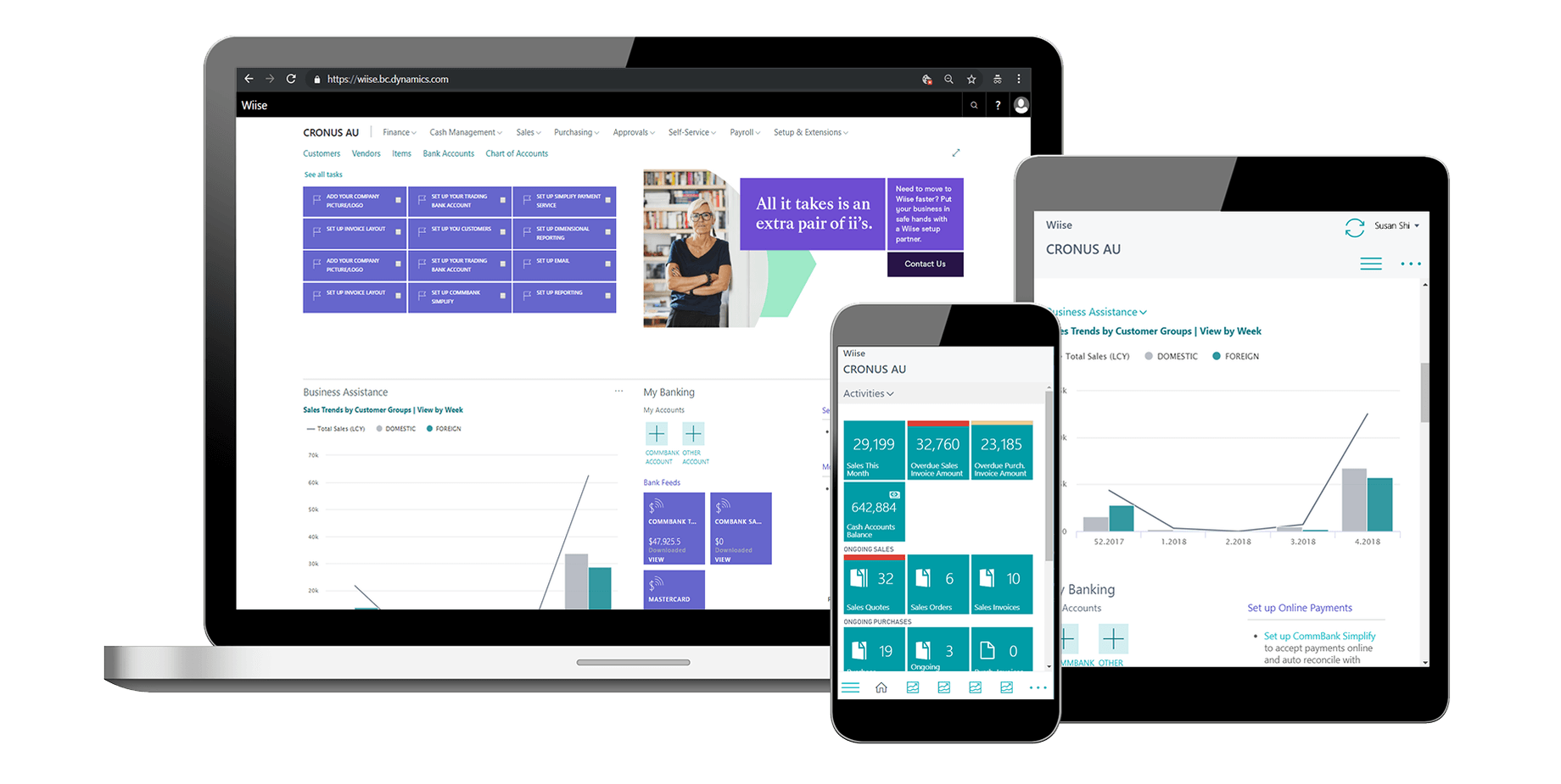 Built on Microsoft Dynamics 365 Business Central, made to fit the Australian SME market. Wiise is an ERP software that manages your accounting, payroll, bank feeds, inventory, CRM and more in one place. Cloud technology that you can access anywhere, anytime, from any device.